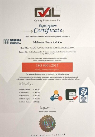 شرکت مهاران نماراه که با هدف کمک به تحقق اهداف خودکفائی ، بی نيازی، اعتلاء و ارتقاء قابليت های صنعتی کشور به منظور طراحی، ساخت، نصب، راه اندازی و ارائه خدمات پس از فروش سیستم های علائم الکتريکی (سیگنالینگ) راه آهن و مترو با تشکلی از متخصصين با تجربه در تهران تأسيس گرديده، در نظر دارد با الگو برداری از سيستم مديريت کيفيت ISO9001:2015 به اهداف ذيل دست يابد: