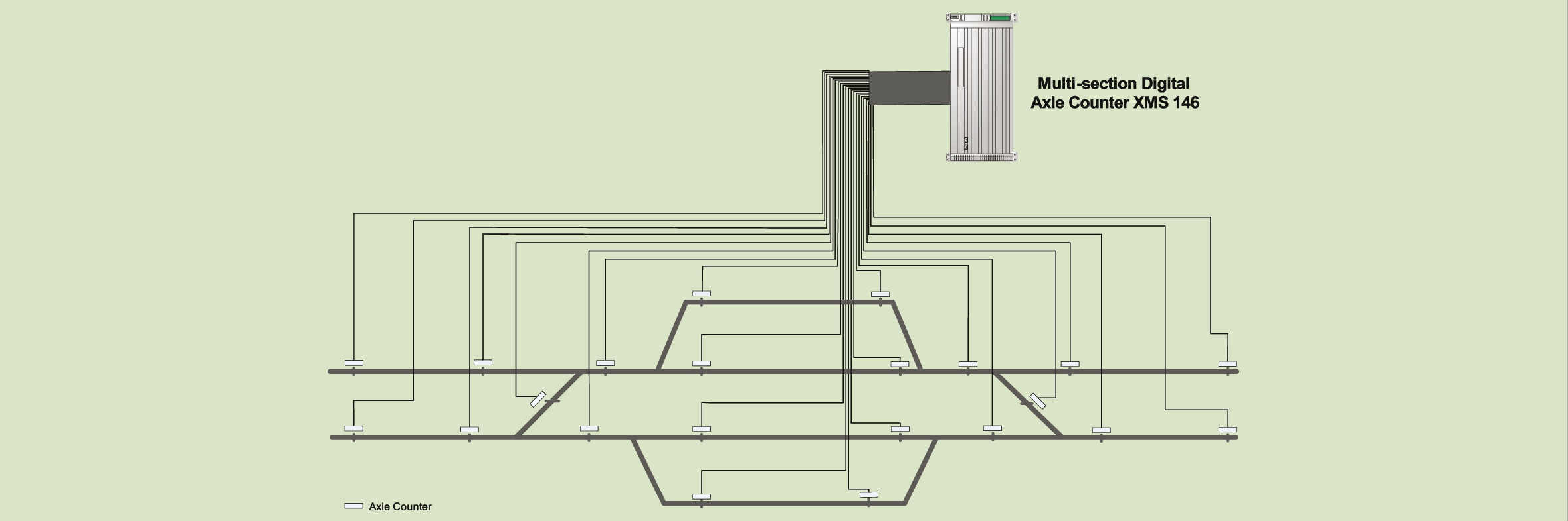 محور شمارهایی که در ایستگاهها نصب می گردند به واحد تراک محور شماری متصل می گردند. به دلیل مدولار بودن این واحد، محدودیتی در تعداد محور شماری که تحت کنترل آن می باشد نیست. واحد تراک محورشماری مدل ۱۴۶ XMS جهت تشخیص حضور قطار و کنترل بلاک به طور هم زمان استفاده می گردد. در این خصوص نیازی به واحد جداگانه ای برای کنترل بلاک نیست. ساختار مدول پردازشگر این سیستم بر پایه انتخاب ۲ از ۳ استوار است.